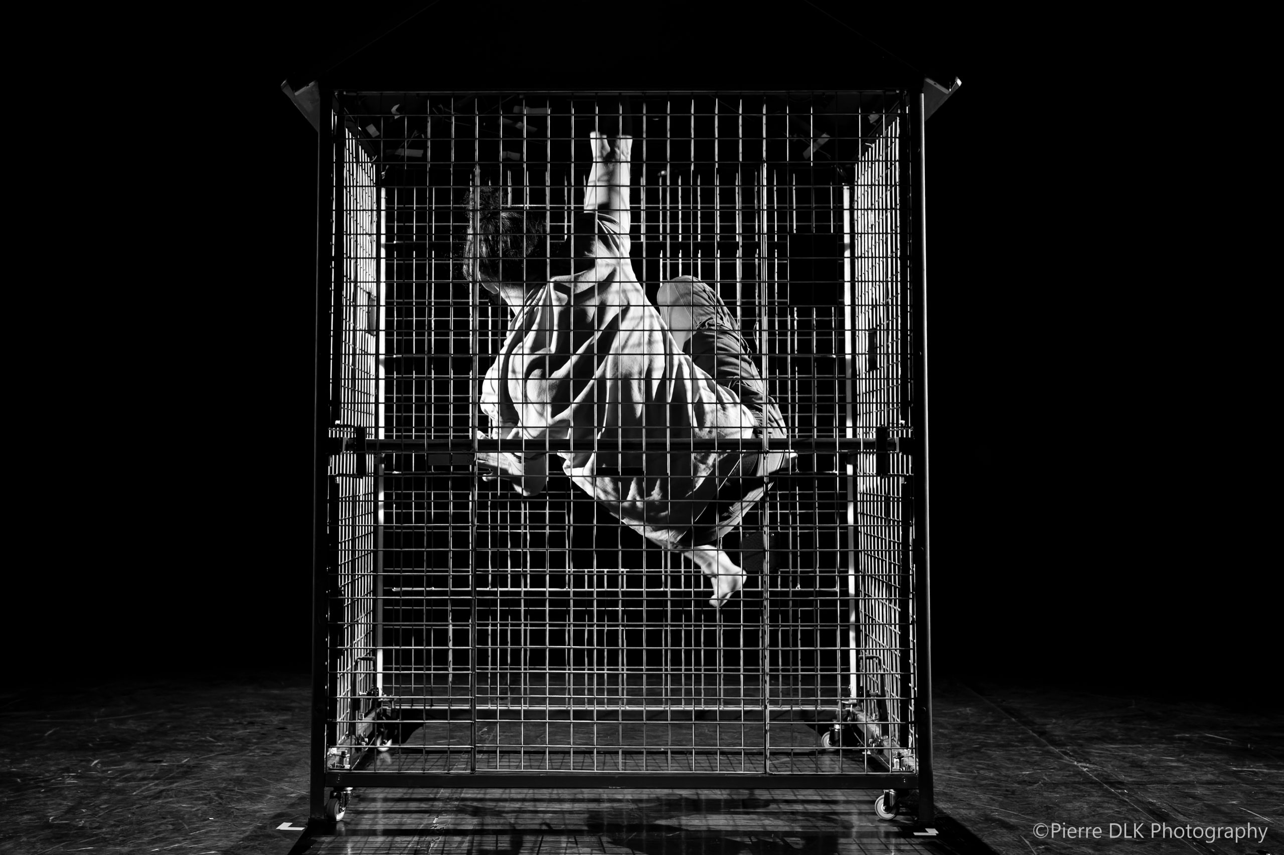 Cette métaphore puissante évoque la perte de liberté, la suppression de la vitalité inhérente à tout être vivant lorsqu’il est restreint dans un espace limité. C’est par le biais de la danse et de la musique que s’expriment les émotions complexes liées à l’enfermement qu’il soit physique, mental ou social en utilisant le corps comme un vecteur de récit viscéral. Le corps fait figure de ce qui se passe à l’intérieur de nous. Des épaules voûtées, la tête rentrée, le diaphragme contracté. La respiration elle-même est contractée et contribue à maintenir cet état psychologique. Le corps est recroquevillé sur lui- même et les pensées aussi. Cet enfermement est signe de limitation. Or, il n’y a de limites que celles que nous nous fixons. En ouvrant grand la porte, on s’ouvre à de nouvelles postures, de nouvelles pensées et de nouveaux territoires.
